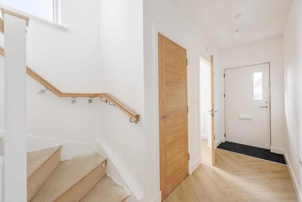 Upstairs, the principal bedroom includes a built-in wardrobe and a stylish en-suite bathroom. There are also three additional bedrooms and a family bathroom featuring a free-standing bath and a separate double shower, all finished with Grohe brassware, ensuring comfort and quality throughout.